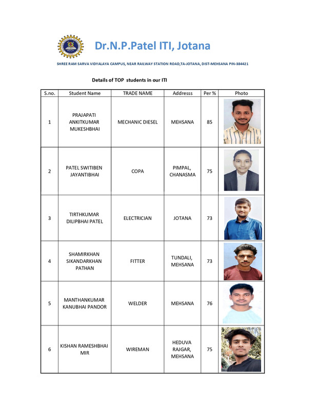 3 | Patel Sunilkumar Rameshbhai | ITI Fitter | Supervisor Instructor | 12 |